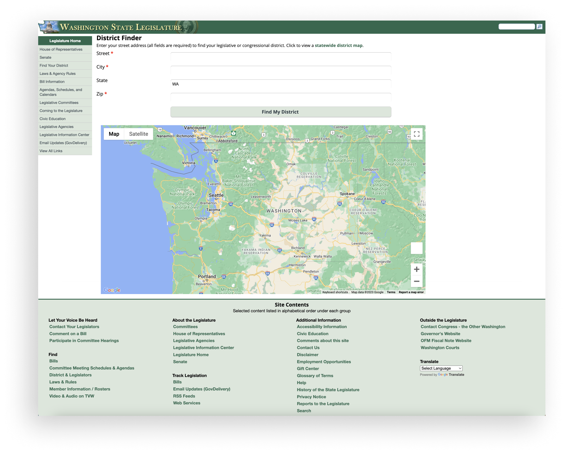Integration with Washington State “Find My Legislator” feature enables quick access to their legislator’s contact information.