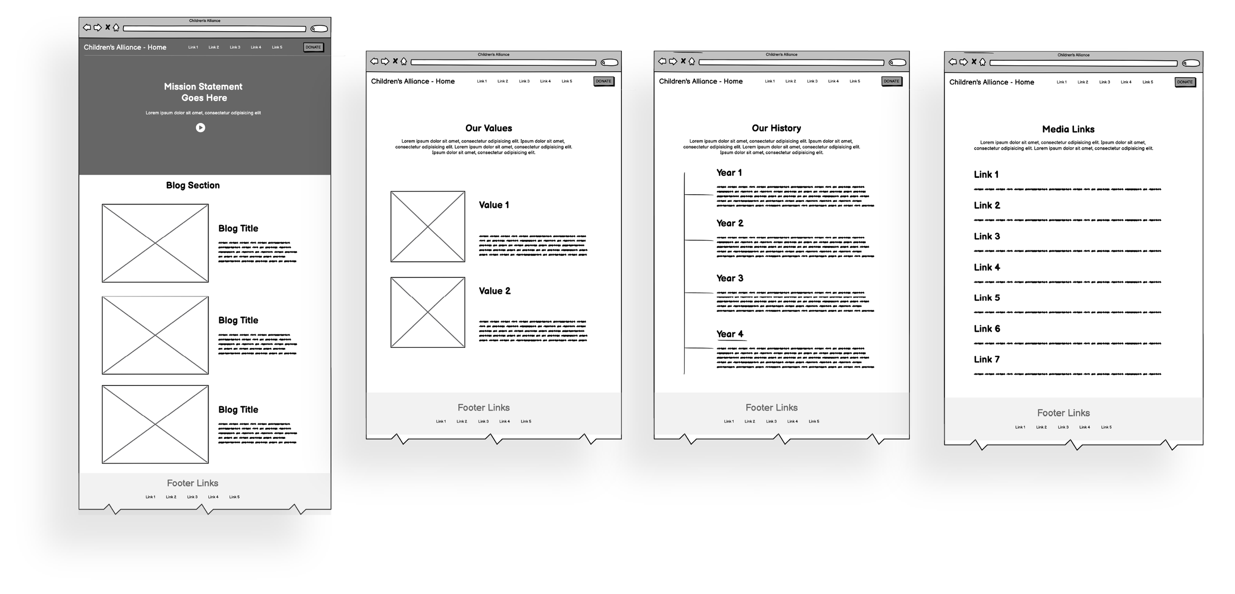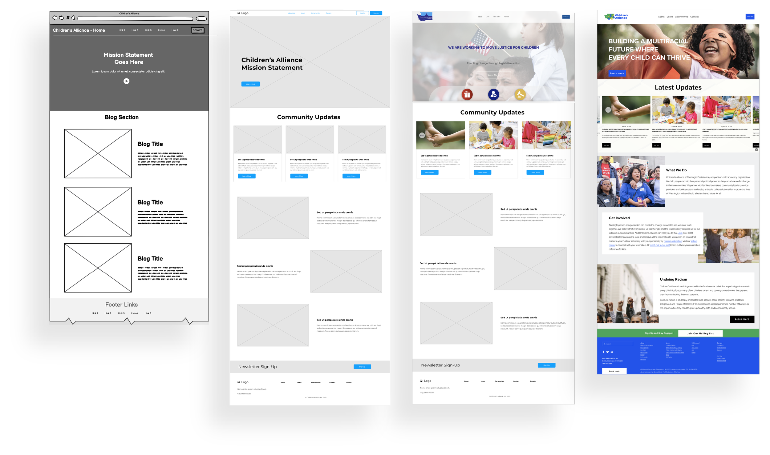 With mid-fidelity wireframes drafted and validated by Children’s Alliance staff, I quickly began development in Squarespace