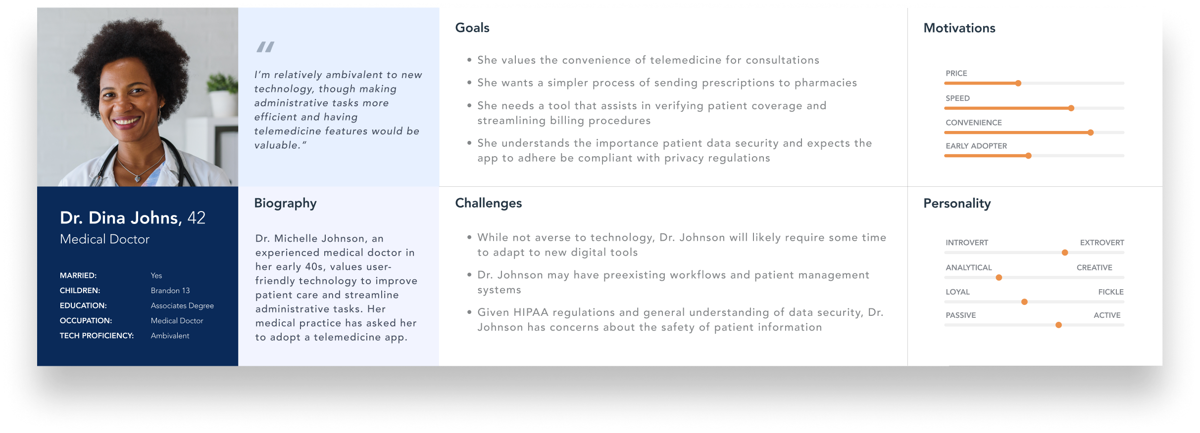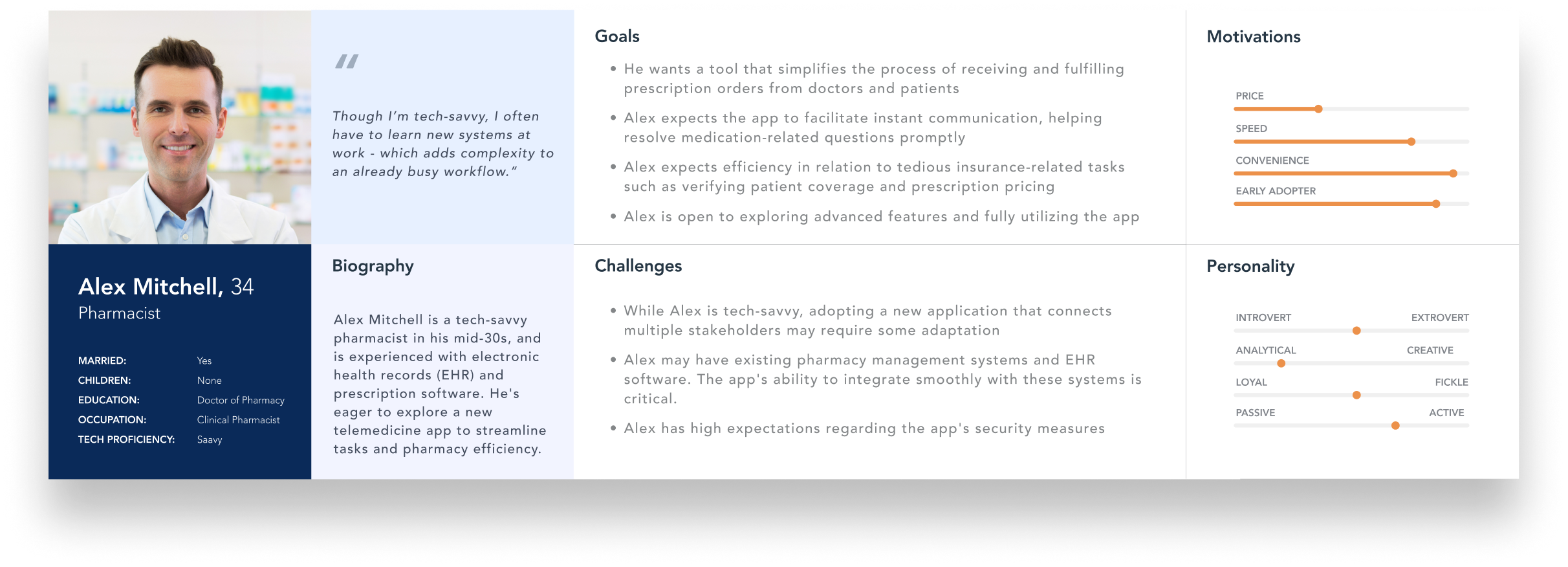 With data gathered from user interviews, our team determined that healthcare patients, doctors, and pharmacists represented the three primary user groups impacted by telemedicine applications.