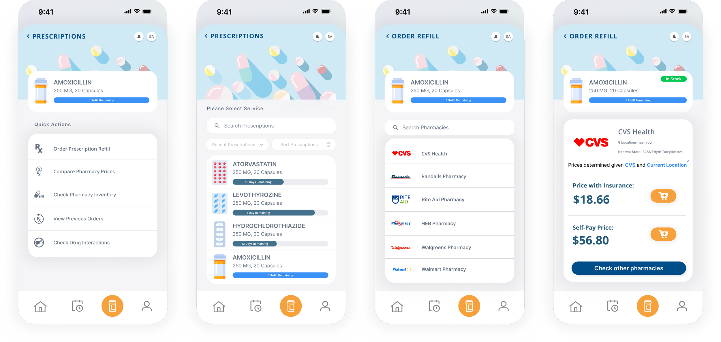 Enables patients to seamlessly order, reorder, and check pharmacy medication inventory directly from their phone.